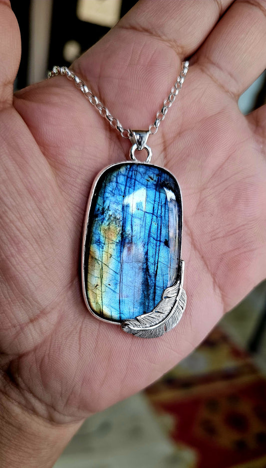 Coiller 0042 Labradorite Bleue et Détail de Plume