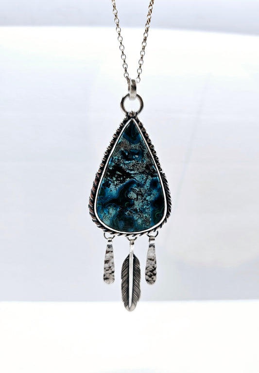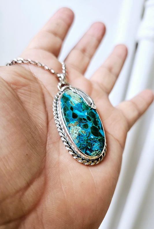Collier artisanal en argent 925 Pierre labradorite turquoise – Pièce Unique !!