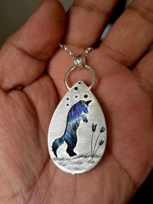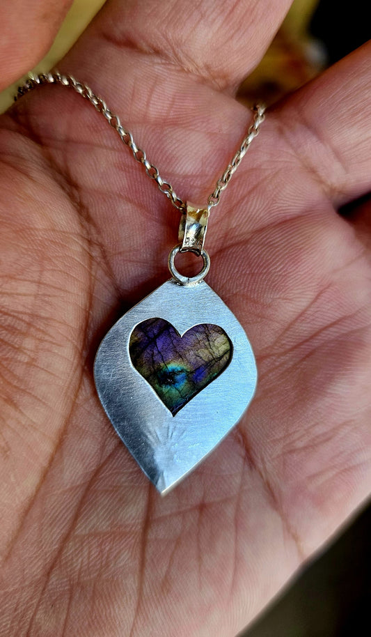 Collier artisanal en argent 925 Pierre labradorite Violette – Pièce Unique !!
