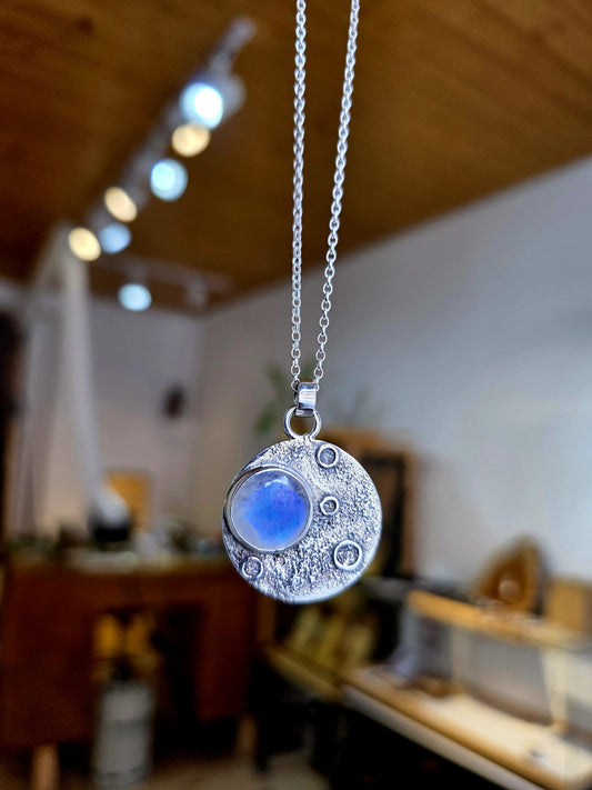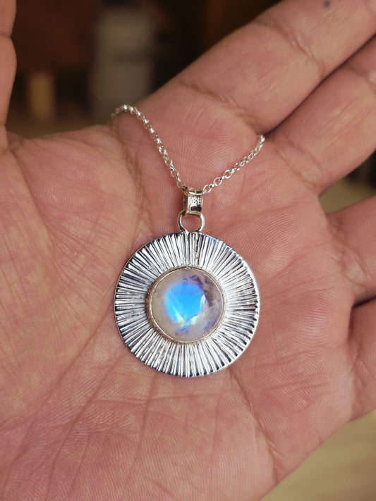 Collier artisanal en argent 925 Pierre lune arc en ciel – Pièce Unique !!