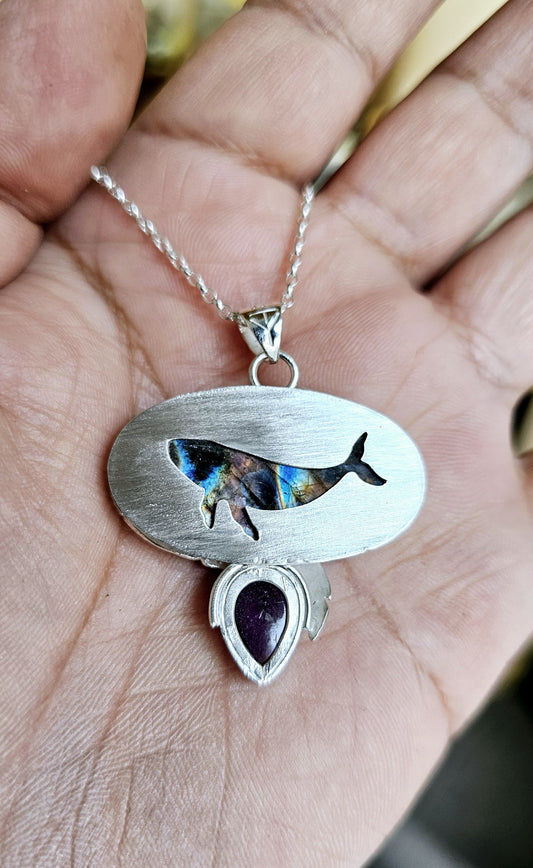 Collier artisanal en argent 925 Pierre labradorite Violette et Améthyste – Pièce Unique !!