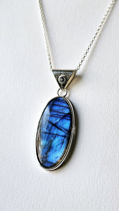 Un bijou unique qui combine l'élégance naturelle de la labradorite avec la délicatesse brillante de la topaze, conçu avec soin pour transmettre puissance et connexion spirituelle.