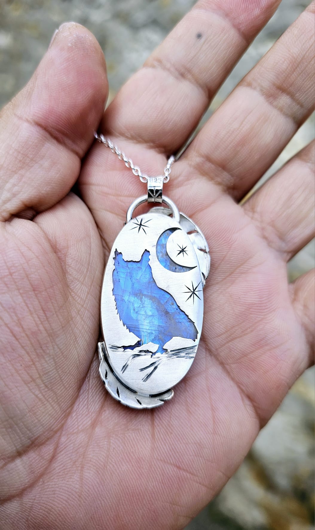 Collier 0068 en argent 925 avec Pierre de Lune et Plumes Sculptées