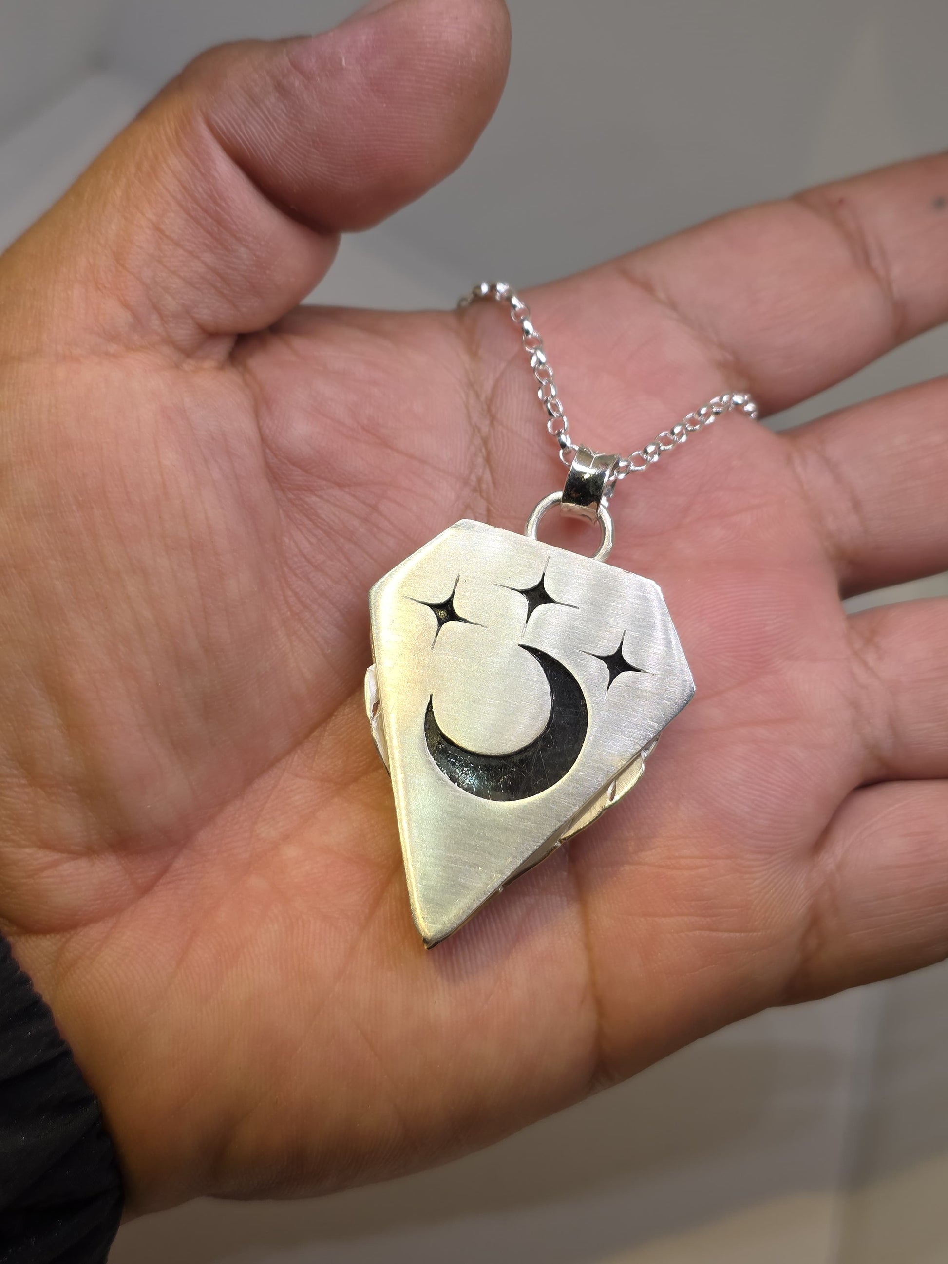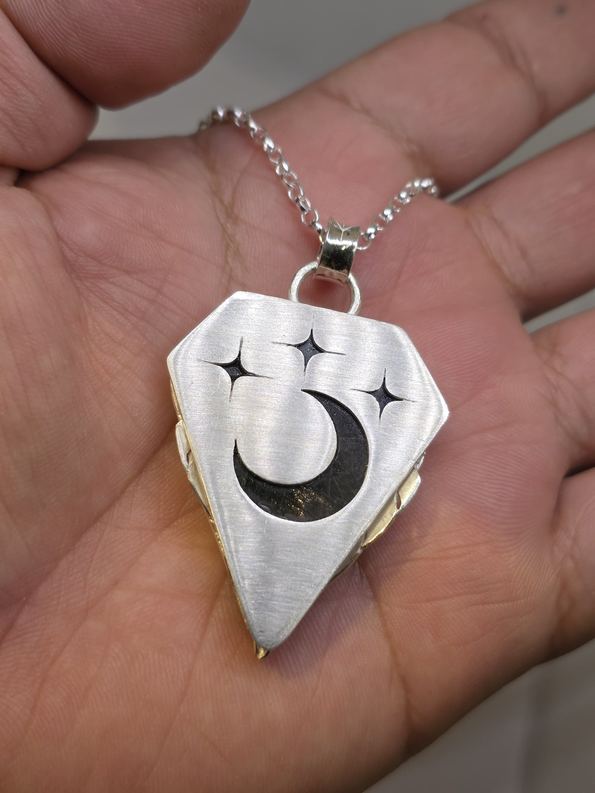 La taille Trilliant intensifie l’éclat de la pierre, créant un effet lumineux vivant. La gravure lunaire transforme le pendentif en un talisman délicat chargé de sens et de poésie.